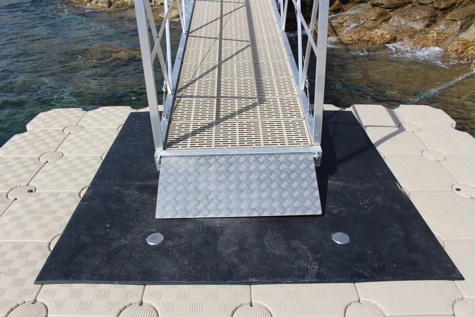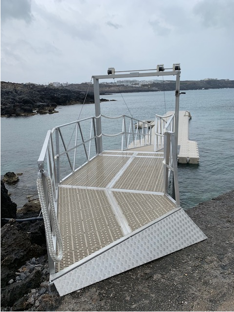 Αντιολισθητική ράμπα αλουμινίου που προσαρμόζεται στους διαδρόμους πρόσβασης διασφαλίζοντας την ομαλή μετάβαση, για την εξυπηρέτηση των ΑΜΕΑ, καροτσιών, αποσκευών κλπ.