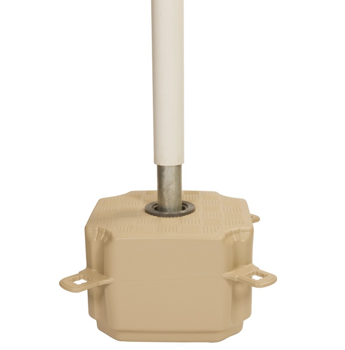 για να χωράει 73mm διαμέτρου σωλήνα από γαλβανισμένο χάλυβα που απαιτείται για την αγκύρωση. Το άνοιγμα αυτό καλύπτεται επίσης με 76,2mm εσωτερικής διαμέτρου κάλυμμα από PVC και από ένα καπάκι. Δεν χρησιμοποιείται μόνο για να κρύβεται το μέταλλο αλλά και για να δώσει καλύτερη δυνατότητα κύλισης. Αυτό το συγκεκριμένο είδος αγκύρωσης είναι πολύ ανθεκτικό και επιτρέπει στην κατασκευή να παρακολουθεί τις διακυμάνσεις του επιπέδου του νερού. Είναι ιδανική αγκύρωση για τις περιοχές στις οποίες εκδηλώνεται παλίρροια/άμπωτη. Σημειώστε ότι δεν πρέπει να χρησιμοποιείται σε περιοχές όπου το βάθος είναι πάνω από 2,25m.
